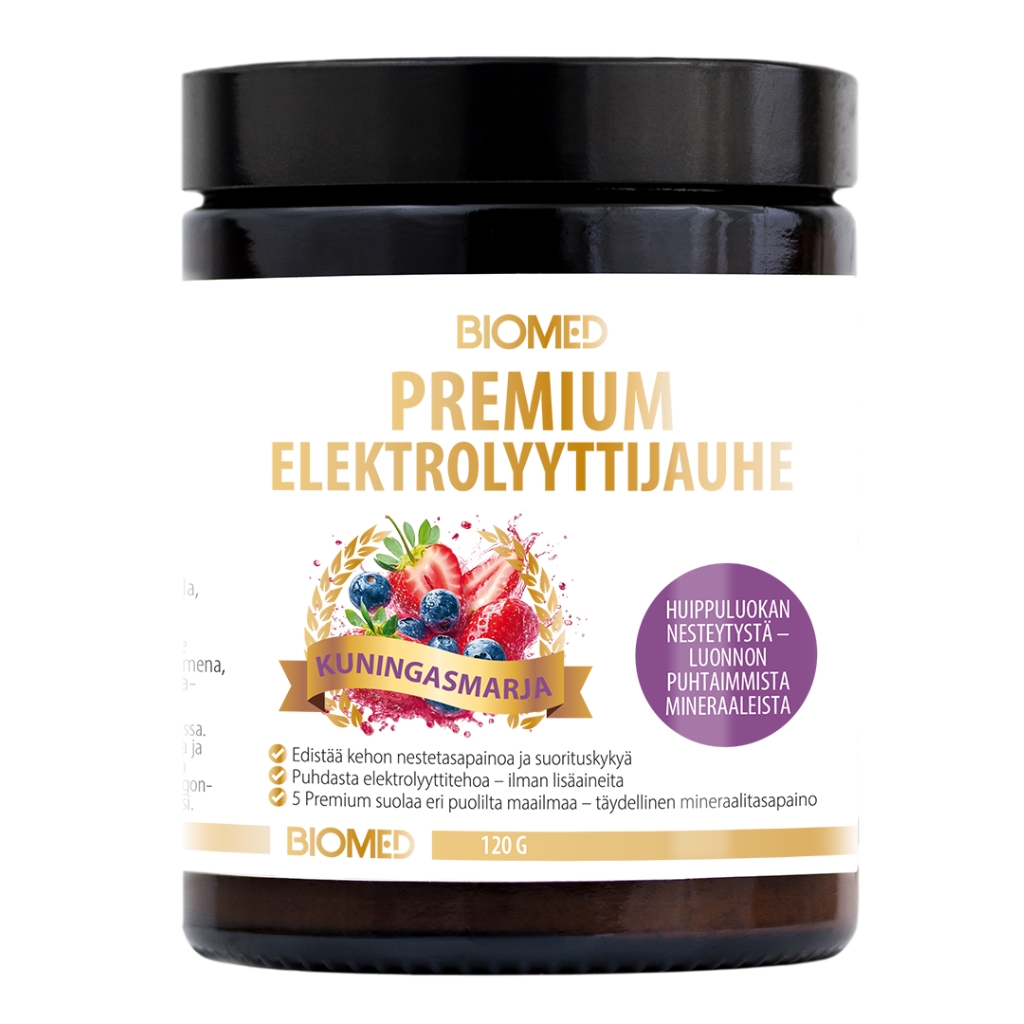 Premium Elektrolyyttijauhe – Kuningasmarja – luonnollinen nesteytys raikkaalla marjamaulla