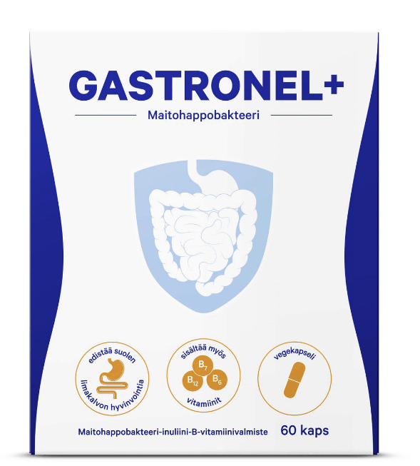 Maitohappobakteeri-inuliini-B-vitamiinivalmiste suoliston hyvinvointiin Gastronel+ on koostumukseltaan ainutlaatuinen ja monipuolinen valmiste edistämään suoliston hyvinvointia.