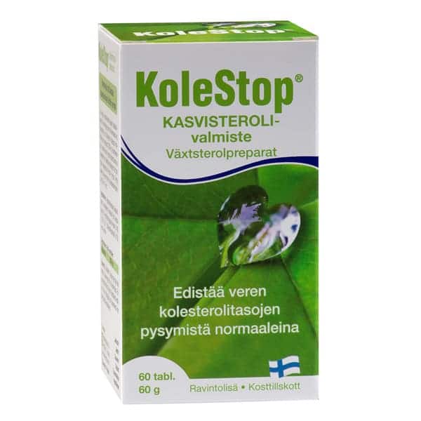 Kolestop sisältää kasvisteroleja, jotka estävät kolesterolin imeytymistä ja auttavat alentamaan kolesterolia. Kolestop on vaivaton tapa kolesterolin hallintaan sekä naisilla että miehillä.