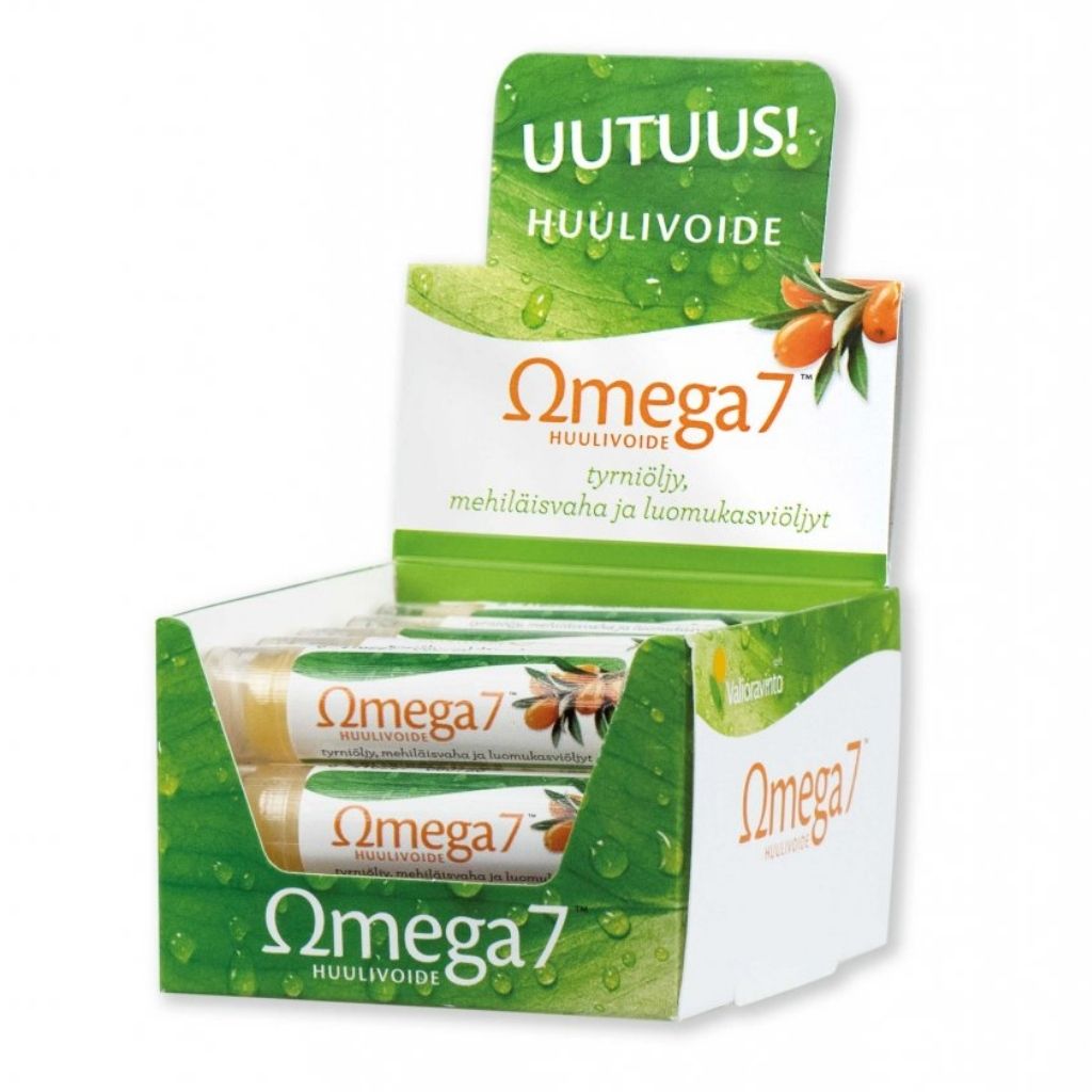 Arvokasta tyrniöljyä sisältävä huulivoiteemme ravitsee ja suojaa huuliasi äärimmäisissäkin olosuhteissa: voimakkaassa auringonpaisteessa ja pakkasessa. Omega7 Huulivoide sopii kaikille kuivista ja halkeilevista huulista tai huulten haavaumista kärsiville. Voiteella on rohtumia ennalta ehkäisevä ja hoitava vaikutus päivittäisessä käytössä. Vaniljan makuinen huulivoide sopii kaiken ikäisille naisille ja miehille sekä lapsille.