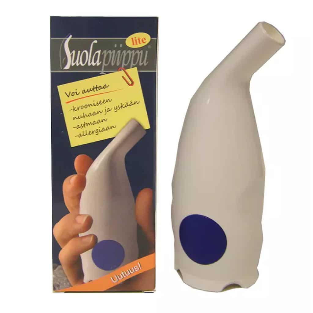 Käyttöohje:Ilmaa hengitetään piipun suuaukosta sisään ja puhalletaan nenän kautta ulos tavallisella voimakkuudella. Suolakiteet pääsevät vain tällä tavoin myös ylähengitysteihin (poskiontelo, nenäontelo) ja puhdistamaan koko hengitysjärjestelmää. Suolapiipun normaali käyttöaika on 5-20 min vuorokaudessa, mutta käsittelyjen pituutta voidaan nostaa 1-2 tuntiin vuorokaudessa. Paras tulos saavutetaan käyttämällä laitetta päivittäin jatkuvasti, eikä vain ajoittain.