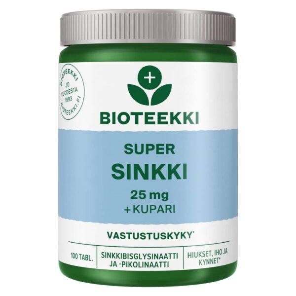 - Sinkki 25 mg (250 % päivän saantisuosituksesta)