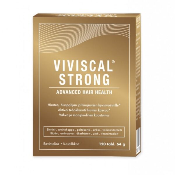 Viviscal Strong -tablettien monipuoliset aktiiviaineet vaikuttavat verenkierron kautta suoraan hiusnystyihin. Biotiini ja sinkki edistävät hiusten normaalia kasvua samalla, kun C- ja E-vitamiini suojaavat soluja hapettumisstressiltä. C-vitamiini edistää lisäksi mm. ihon toiminnalle tärkeän kollageenin normaalia muodostumista.