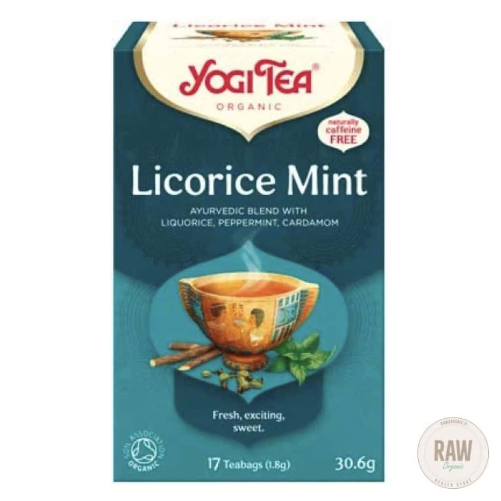 Ayurvedisesti maustettu luomutee. Yogi Tea Licorice Mint tee sisältää virkistävää ja viileää minttua sekä lämmittävää inkivääriä, neilikkaa ja makeaa lakritsanjuurta. Luontaisesti kofeiiniton, joten sopii nautittavaksi myös myöhään illalla.